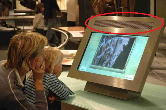 The Dakota Audio MA-4 provide excellent voice intelligibility, originally designed for children’s science museum, with a frequency response optimized for voice and incidental music. The MA-5 provides a broader sound range when needed. The MA Series delivers a highly directional side-to-side sound with a wide vertical pattern. This design ensures effective sonic isolation between displays while offering consistent coverage for listeners, regardless of their height. To accommodate size constraints, the amplifier is positioned remotely from the speaker array and connected by a 6′ multi-conductor cable. (included). (For maximum intelligibility or smaller size, please check out our MA-4 Series). The MA-5 units are usually mounted horizontally above or below a display or screen, but have other applications such being suspended overhead to provide a “path” of sound.